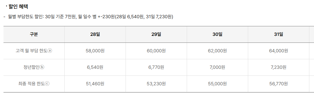 - 정기사용 시 7천원 할인 적용 (청년 요금 기준)