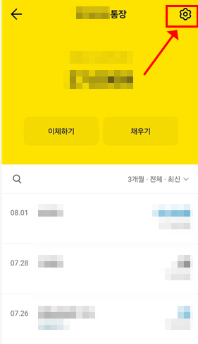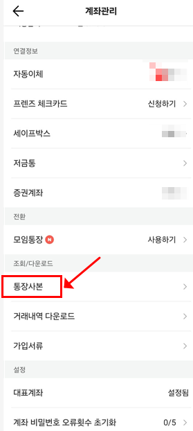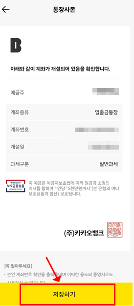 - 모바일 앱: 앱 실행 → 계좌 선택 → 우측 상단 바퀴모양 설정 버튼 → 통장 사본 저장하기 클릭 → 이미지 저장