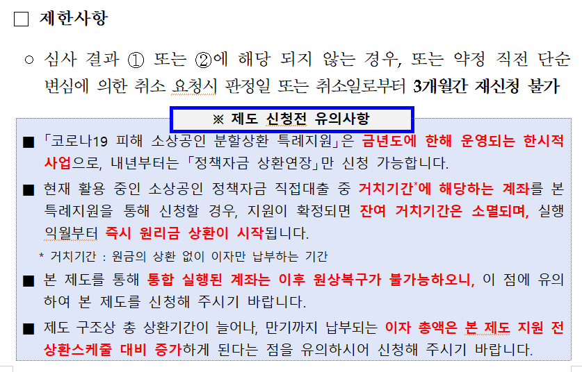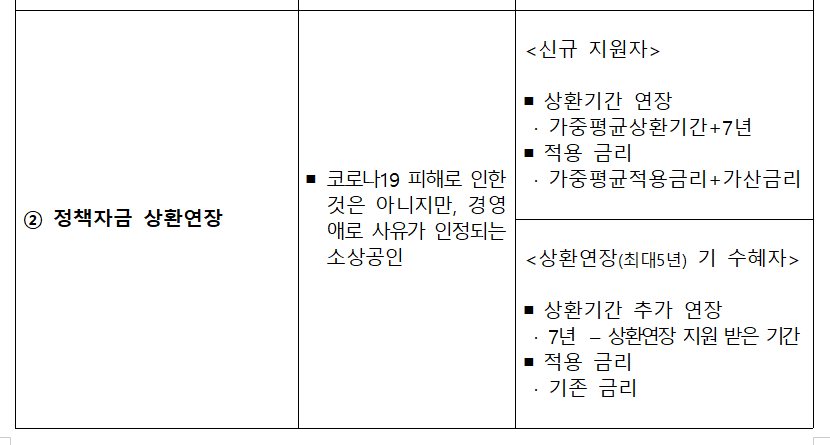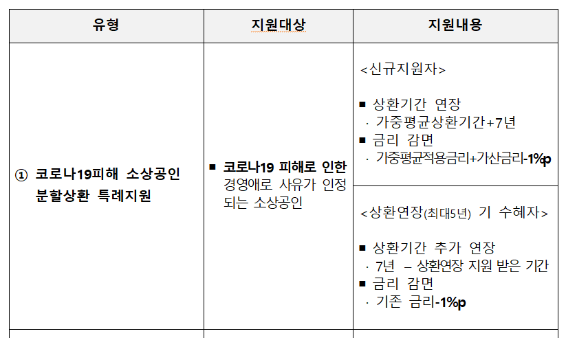 - 분할상환 특례 (상환연장 최대 7년 + 금리 감면 1%p)