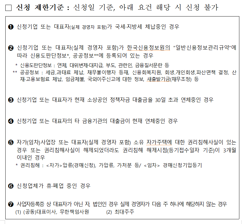 - 코로나 19 피해로 인한 경영애로 사유에 해당하지 않아도 아래 기준 중 1개 이상 해당하는 자