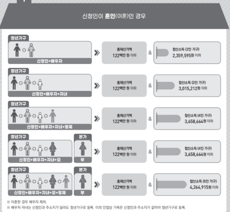 - 청년가구 총재산가액 1.22억원 이하, 원가구 4.7억원 이하